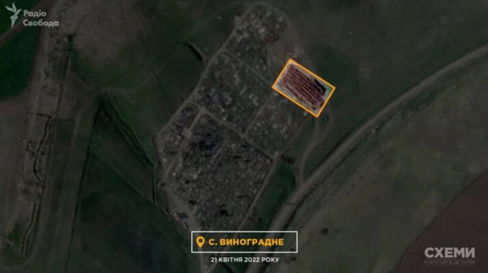При цьому збільшилось місце масового захоронення і на кладовищі біля села Виноградне на схід від Маріуполя.