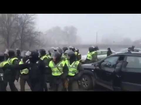Правоохоронці намагаються за допомогою важкої військової техніки прибрати з проїжджої частини автомобілі протестувальників проти розміщення людей, що прибули з Китаю.