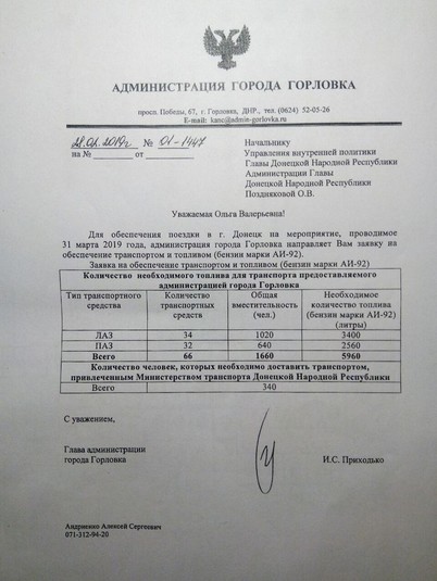«31 березня в окупованому Донецьку готується масштабна провокація ... Коли в Україні відбудуться вибори президента, на центральній площі Донецька заплановано масовий захід ... Планується зігнати на площу Леніна в Донецьку 100 тис. людей (незважаючи на те, що площа фізично не вміщає таку кількість людей). Підвезення буде організовано автобусами. «Домальовувати» натовп будуть численні російські пропагандисти. Існує навіть схема розміщення людей на площі», - йдеться в повідомленні.