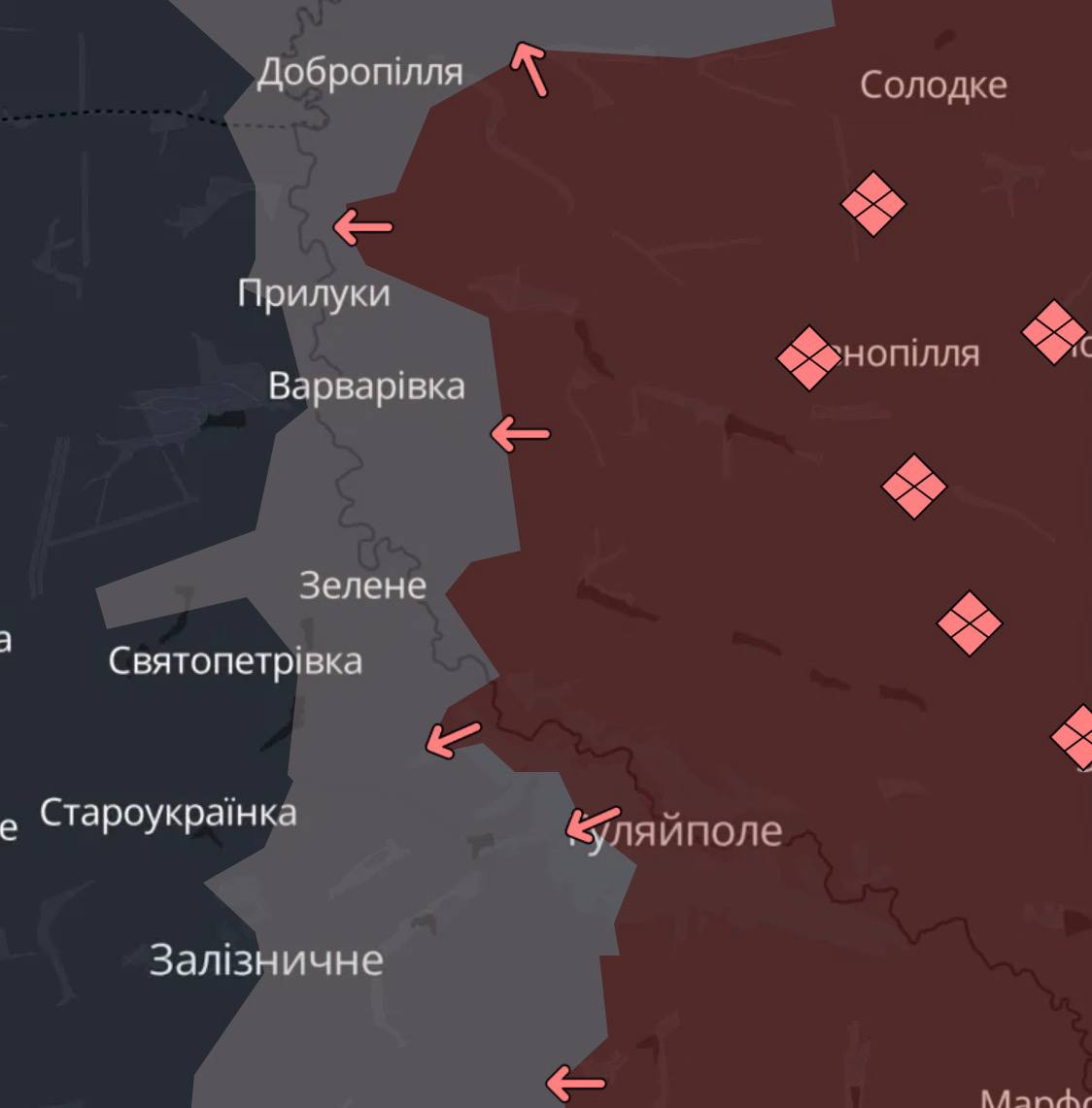 Відбулося 23 атаки у районах Гуляйполя, Мирного та у бік Залізничного, Добропілля й Староукраїнки. Ворог завдав авіаударів по районах населених пунктів Воздвижівка, Самійлівка, Голубкове, Чарівне, Гуляйпільське, Любицьке, Терсянка, Барвінівка, Верхня Терса. Три боєзіткнення триває.