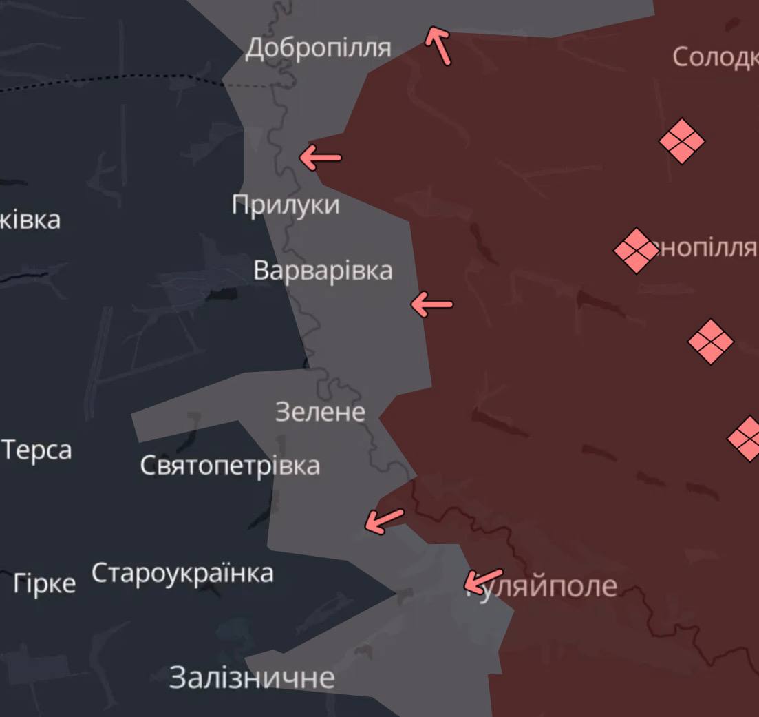 Окупанти атакували 15 разів – у районах Гуляйполя, Добропілля, Дорожнянки та у бік Залізничного, Цвіткового. У деяких локаціях бої тривають дотепер. Ворожа авіація завдала ударів по населених пунктах Верхня Терса, Гуляйпільське, Любицьке, Лісне, Воздвижівка, Чарівне, Гірке, Барвінівка.