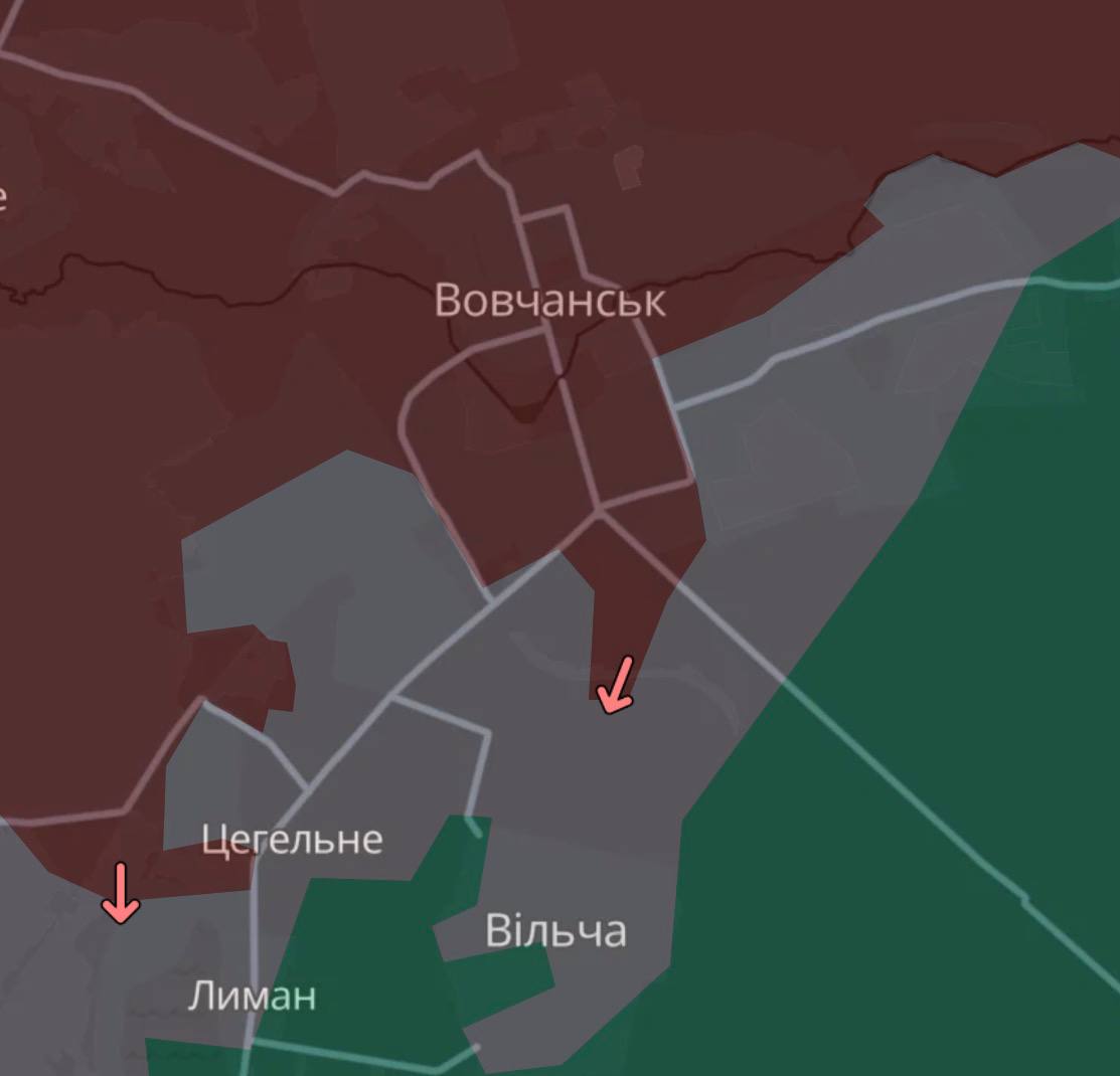Противник штурмував позиції наших підрозділів у районах населених пунктів Вовчанськ, Вовчанські Хутори та у бік населених пунктів Графське, Охрімівка. Українські підрозділи відбили три атаки, ще три бойові зіткнення наразі тривають.