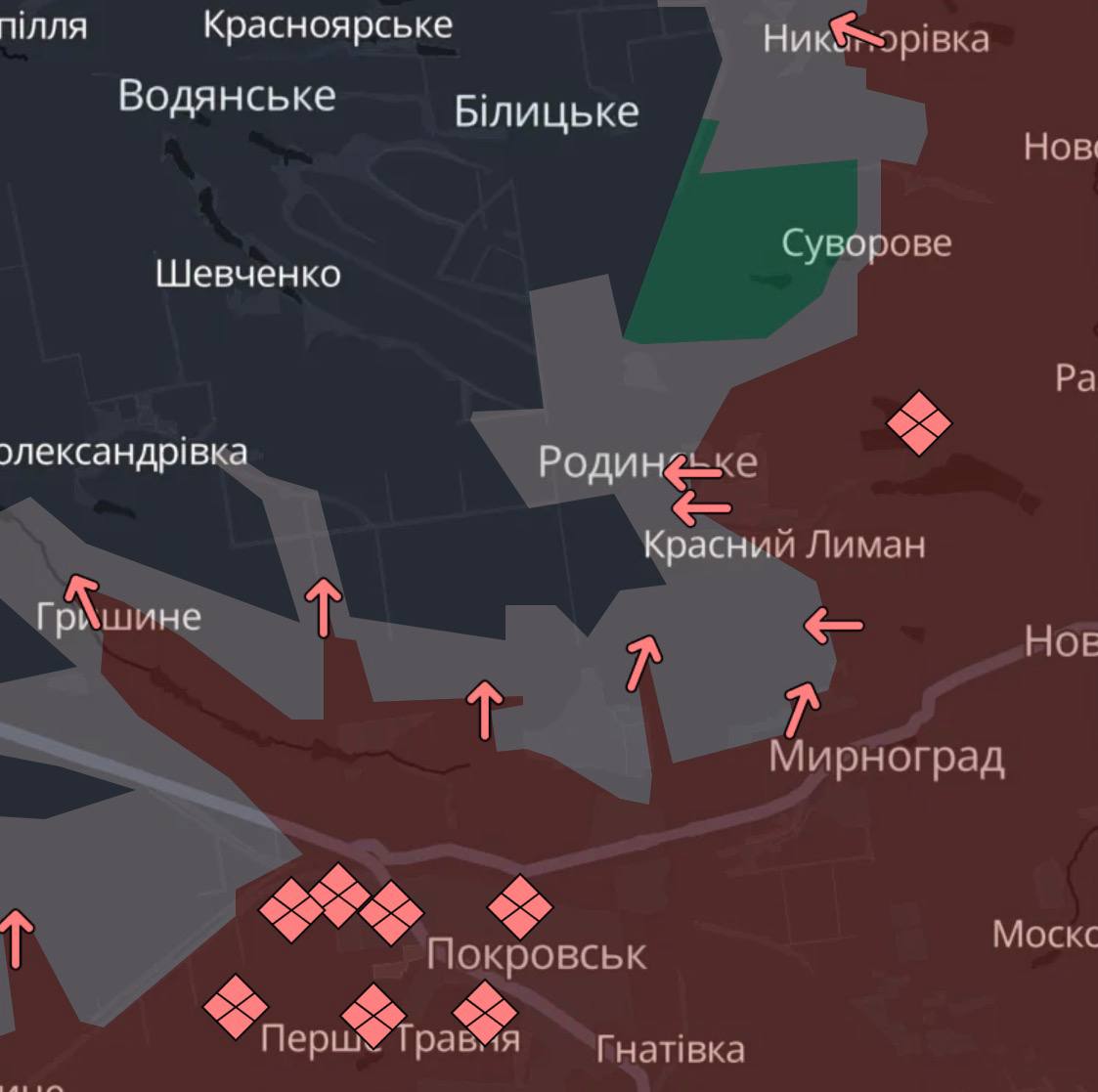 Ворог здійснив 39 атак. Окупанти намагалися просунутися у районах населених пунктів Білицьке, Родинське, Мирноград, Покровськ, Котлине, Удачне, Новомиколаївка, Новопідгороднє, Молодецьке, Горіхове та в сторону Гришиного, Шевченка. Одна штурмова дія триває.