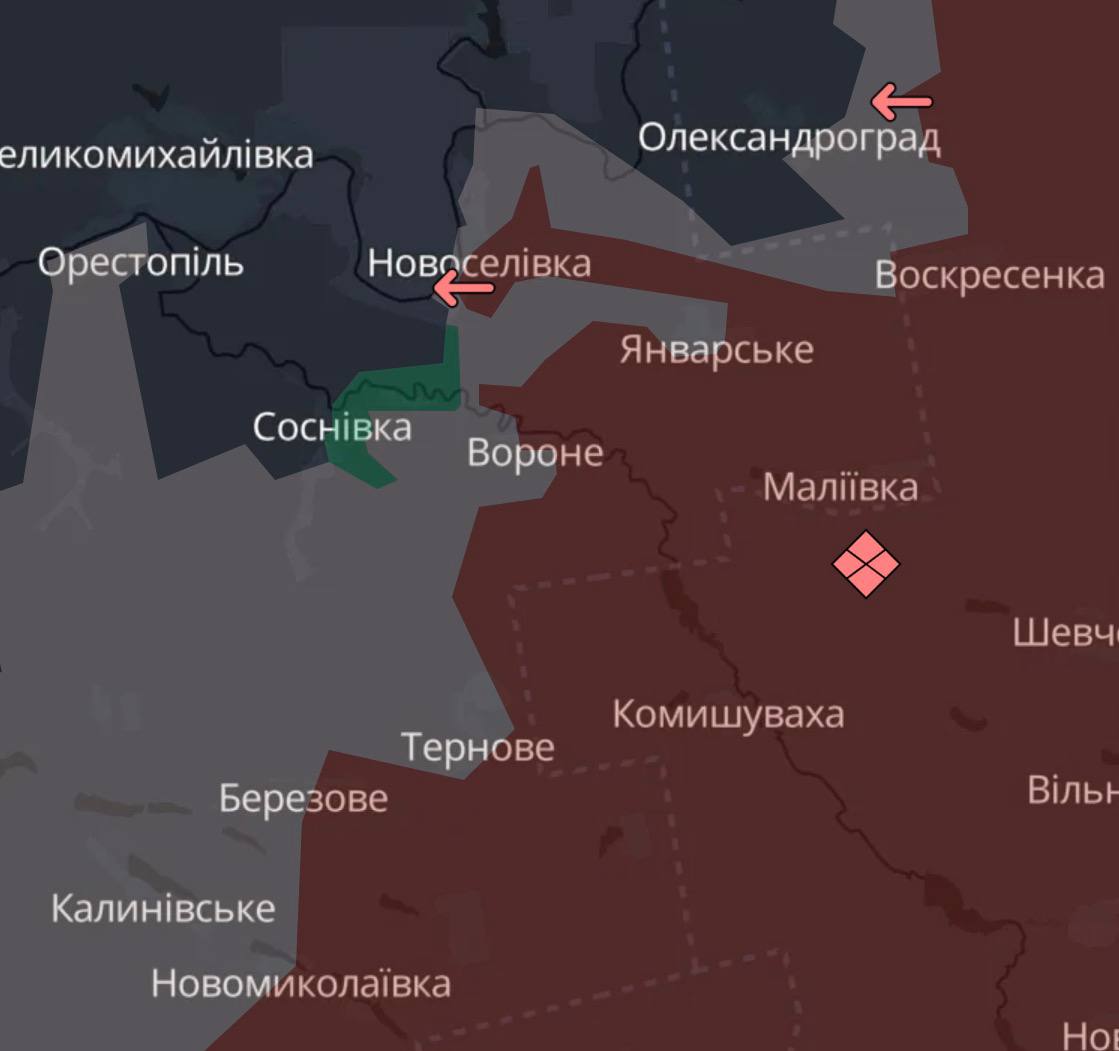 Противник п’ять разів намагався просунутися вперед у районах Закітного, Різниківки, Платонівки та у бік Рай-Олександрівки. Дві атаки тривають.