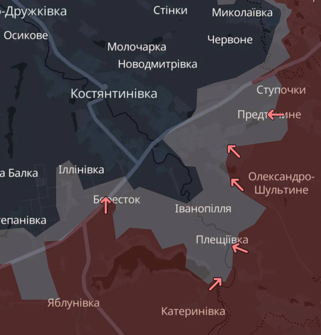 Окупанти сьогодні 17 разів штурмували позиції наших оборонців в районах населених пунктів Костянтинівка, Плещіївка, Новопавлівка та в бік Іллінівки, Торецького. Одна атака триває.