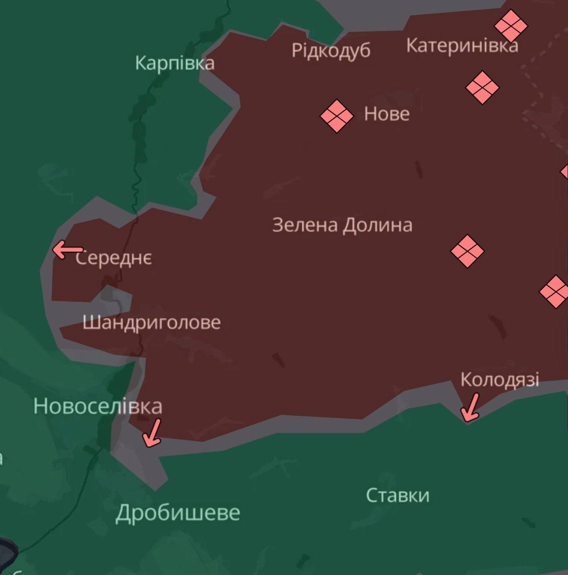 Українські воїни зупиняли 18 атак окупантів в районах населених пунктів Копанки, Середнє, Новоселівка, Ставки, Дробишеве, Зарічне. Ще одне боєзіткнення триває.