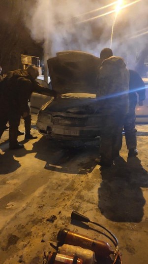 Близько 20.00, коли службовий автобус в’їхав у місто Київ, правоохоронці побачили на узбіччі дороги автомобіль «Ауді», у якого горів моторний відсік. Власник автомобіля не міг самотужки збити полум’я, тому зупиняв транспортні засоби та просив допомоги в інших водіїв.
