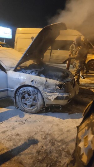 Очевидцями пожежі правоохоронці стали при в’їзді у Київ – вони загасили «Ауді» дочекались екіпажу патрульної поліції та поїхали далі на схід України.