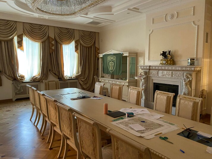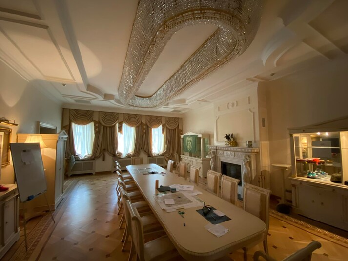 Єдиним варіантом на цій закритій і до війни добре охоронюваній території залишився маєток Віктора та Олени Пінчук, який стояв законсервований багато років. За годину після того, як люди у військовій формі зайшли до будівлі, з ними зв'язався особисто Пінчук. Так мобільний госпіталь отримав штаб за згодою сторін.