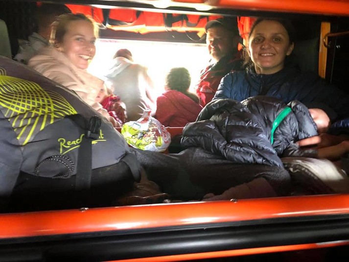 О 19:55 рятувальники на спецавтомобілі доставили дітей та жінок, котрі потребували допомоги на г. Говерла, до урочища Козьмещик. Інші члени групи рухаються пішки у супроводі рятувальників.