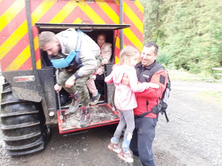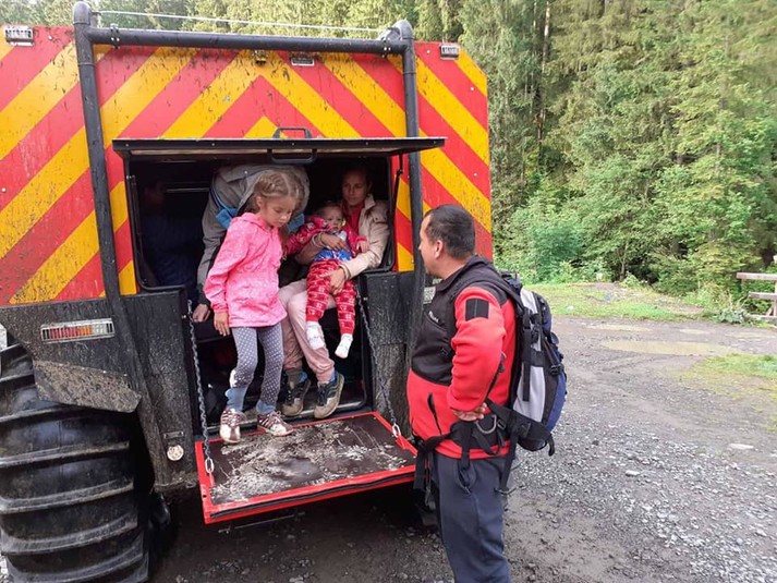 Малі діти на Говерлі. Рятувальники проводять евакуацію після сильної зливи