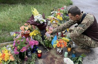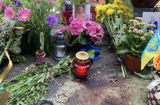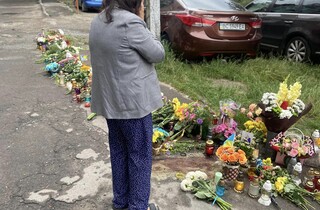Софія Семчишин, донька колишньої депутатки та професорки Ірини Фаріон, на яку було скоєно замах та яка померла в лікарні, оприлюднила в фото з місця стрілянини. Сюди небайдужі громадяни несуть квіти та лампади.
