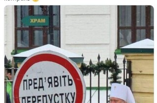 Знімок митрополита Павла, що сиротинкою стоїть під знаком «Пред’явіть перепустку», розсмішив українців