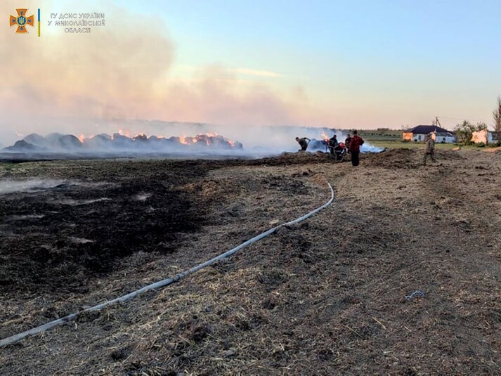 За минулу добу трапилося ще сім пожеж на природі в Баштанській та Миколаївській територіальних громадах: горіли як суха трава, так і очерет, солома, сміття, чагарники тощо. Двічі загоряння починалися через ворожі обстріли.