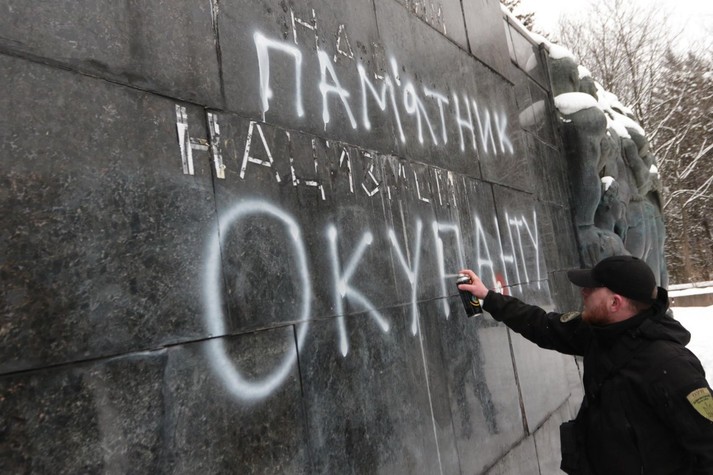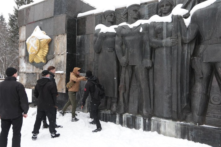 Активісти заявили, що пам'ятник варто знести в рамках декомунізації, а своїми діями вони нагадали владі про це.