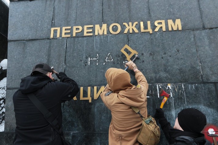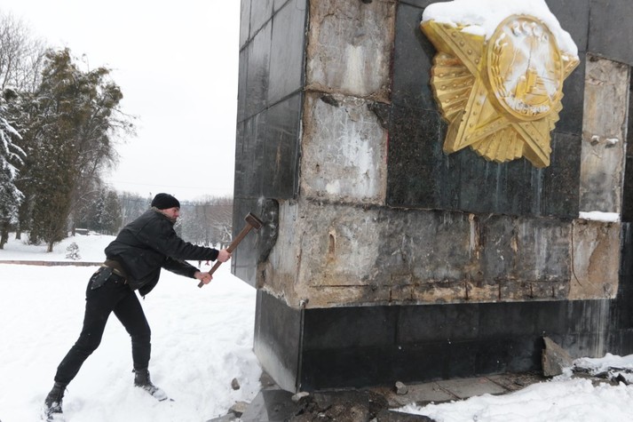 У Львові розгромили Монумент слави на вулиці Стрийській. Активісти розбили молотками плити та зірвали напис «Переможцям над нацизмом», замінивши його на «пам'ятник окупантам». Про це повідомила поліція Львівської області на сторінці у соцмережі Facebook.