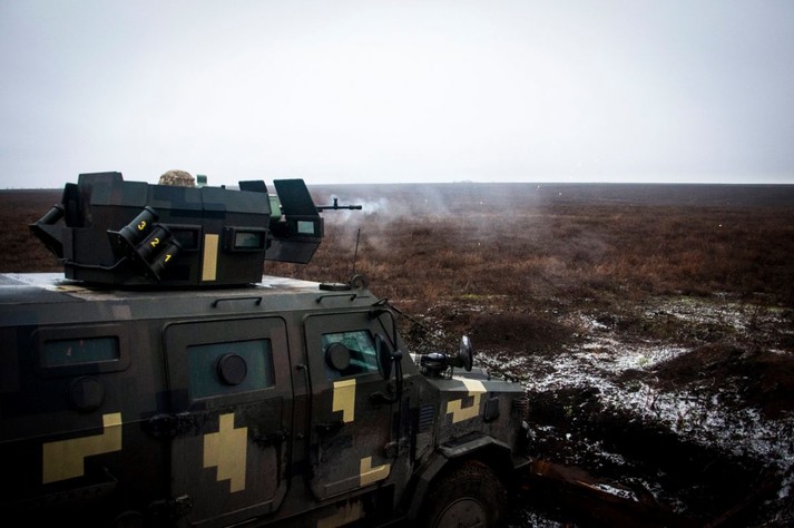 На одному з полігонів у районі проведення операції Об’єднаних сил морські піхотинці вдосконалювали навички з водіння та практичного виконання вправ стрільб на бронеавтомобілях «Козак-2».