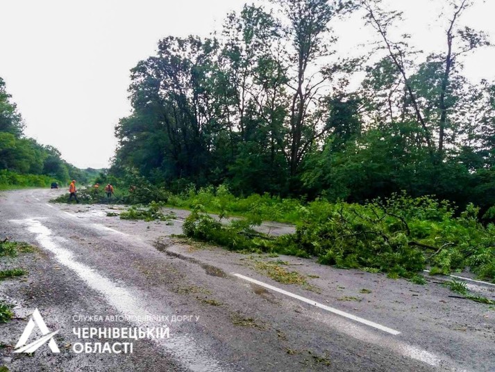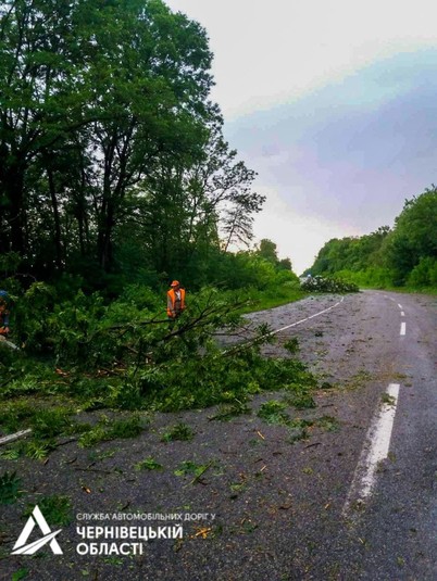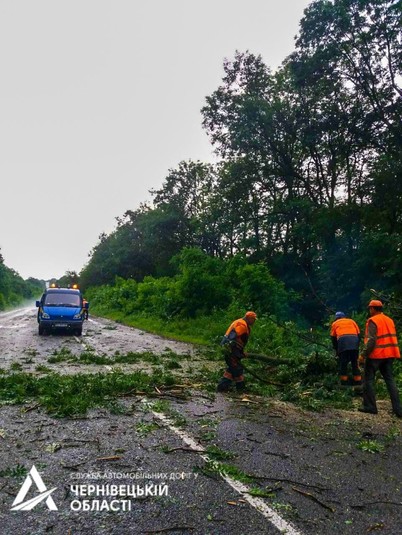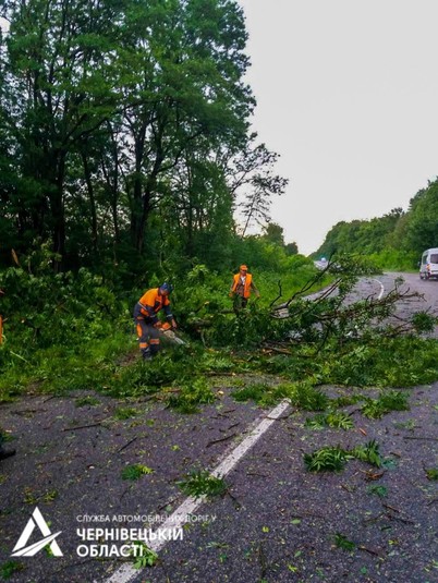 Наразі працівники підрядної організації ДП «Чернівецький облавтодор» прибирають повалені дерева та гілля узбіч та проїжджої частини.