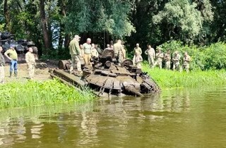«У військових стане ще на один танк більше. Водолази-сапери та фахівці водолазно-рятувальних підрозділів Державної спеціальної служби транспорту спільно із військовими оперативного командуванням «Північ» витягли російський танк, який був затоплений під час невдалої спроби переправитись через річку Десна в районі села Шестовиця на Чернігівщині», – йдеться в повідомленні.