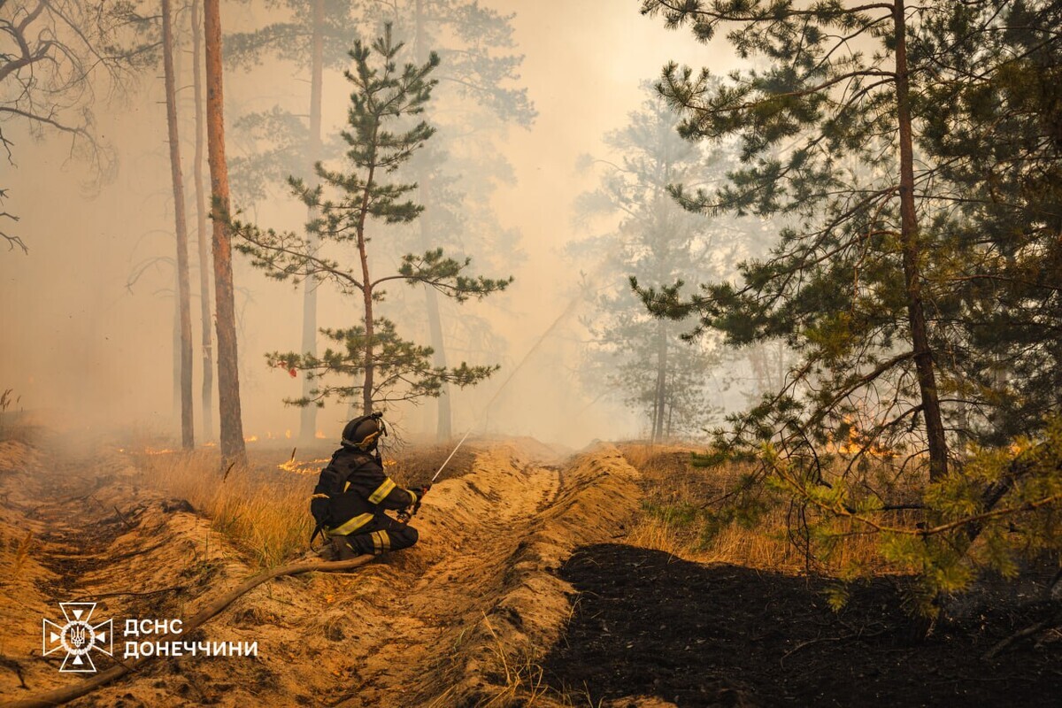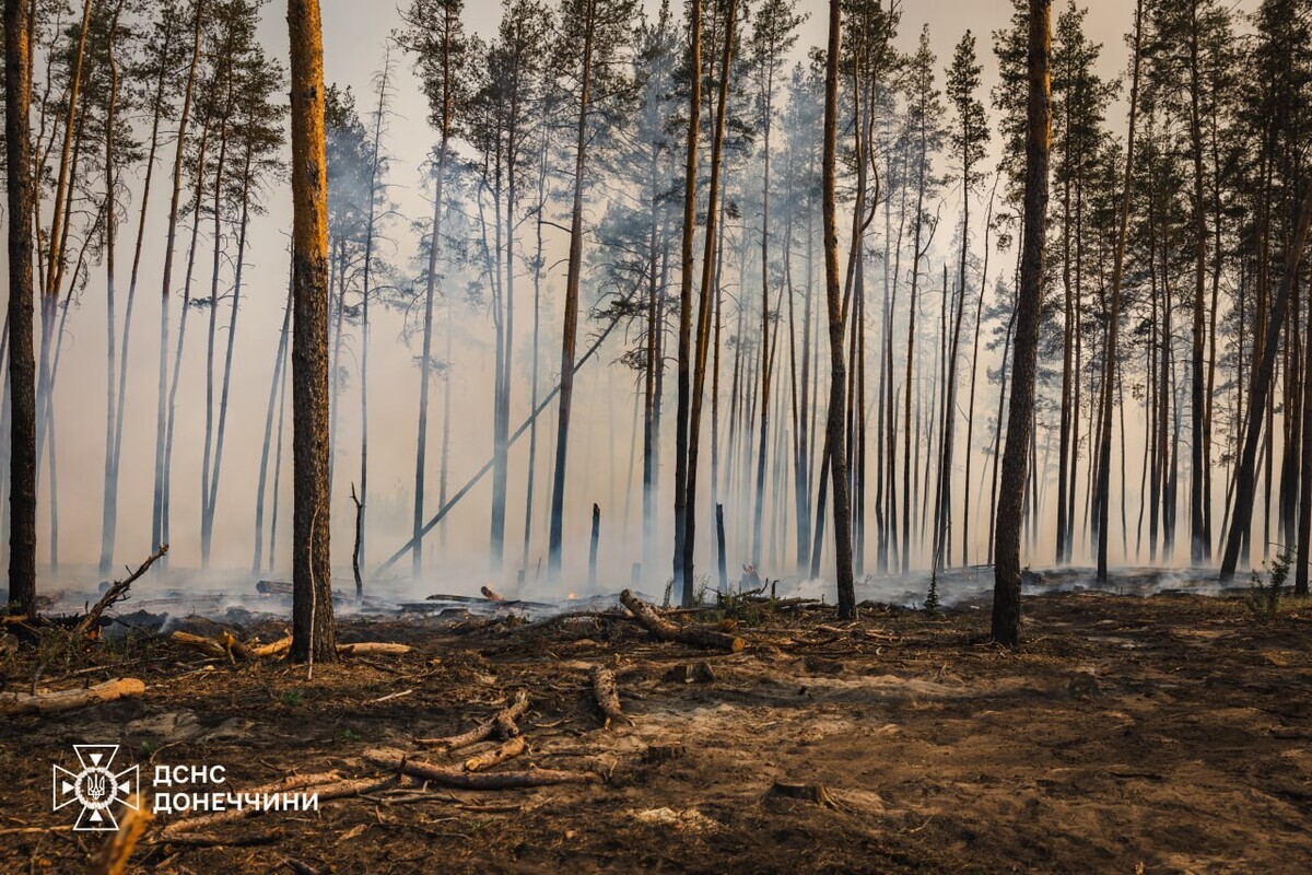 На Донеччині рятувальники майже тиждень боролись із лісовою пожежею