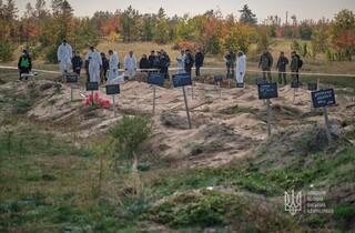 «Що стосується Святогірська, то там сьогодні на міському кладовищі перезахоронили 21 тіло - це цивільні, які загинули під час окупації міста. Поки тривали бої за Святогірськ та окупація, загиблих закопували на вулицях і подвір'ях.Усі тіла з числа перезахоронених сьогодні, ідентифіковані та належним чином предані землі.