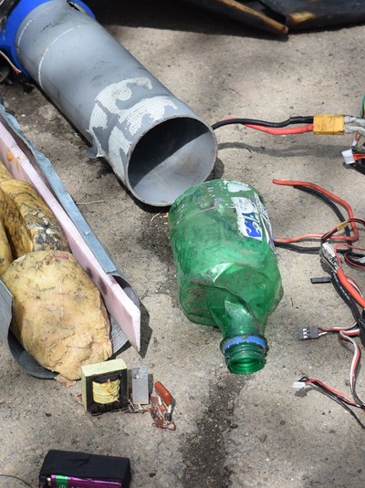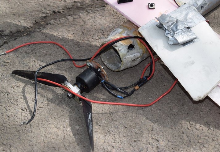 Безпілотний літальний апарат вироблений кустарним способом. Очевидно, аби уникнути можливості його ідентифікації, говорять у Штабі. БПЛА зібраний на основі поліпропіленової труби, де містилася капсула із бойовою речовиною та електродетонатором, що приводився у дію внаслідок зіткнення БЛА із об’єктом. За попередніми оцінками фахівців штабу АТО, літальний апарат був запрограмований на ураження цілі за раніше уведеними координатами й виконував політ в автоматичному режимі.