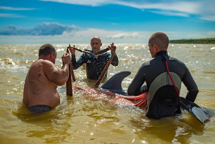 На Херсонщині врятували дельфіна, якого шторм прибив до берега (фото)
