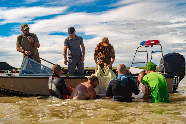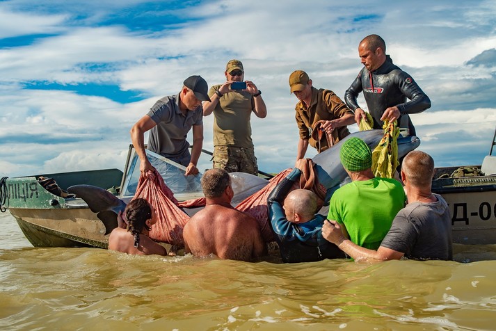 Він прибув трохи більше як за годину. Тварину повантажили на плавзасіб і повезли в бік Очакова, до моря.
