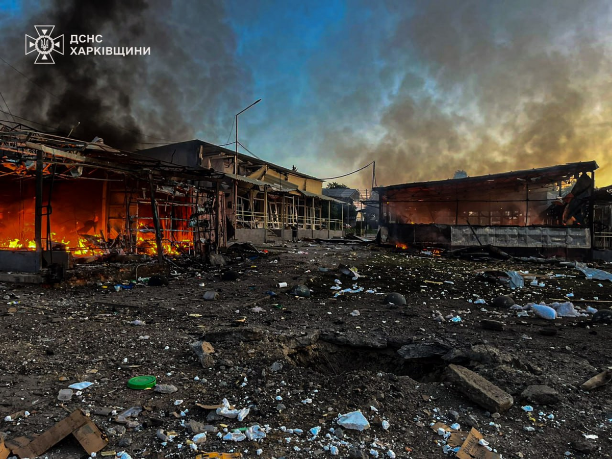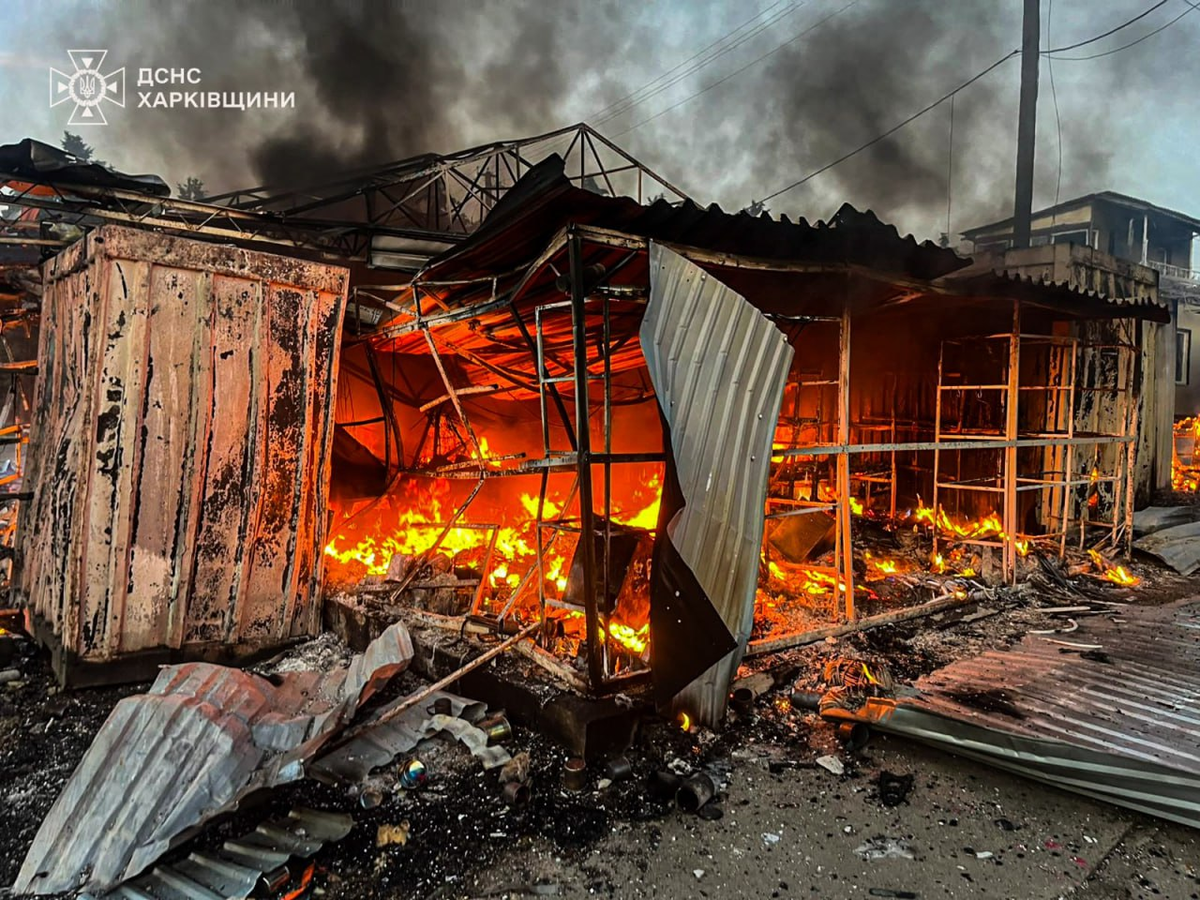 Увечері 22 липня російська армія завдала удару безпілотниками по селищу Великий Бурлук Куп’янського району. Внаслідок чого спалахнула пожежа на ринку. Про це повідомляє «Главком» з посиланням на ДСНС.