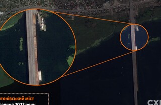 Рашисти на тимчасово окупованій Херсонщині намагаються звести понтонну переправу через річку Дніпро впритул до Антонівського мосту. Про це повідомляють «Схеми».