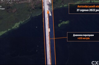 Станом на 27 серпня ворожим військам вдалося збудували 620 м переправи – майже до середини мосту. Перші ознаки будівництва переправи були зафіксовані 19 серпня.