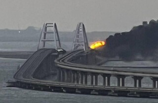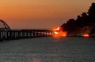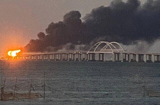 Як повідомлялося, у районі Кримського мосту 8 жовтня близько 6 години ранку пролунав вибух. На місці події спалахнула пожежа та здійнявся величезний стовп диму. Місцеві мешканці розповіли, що був «приліт».