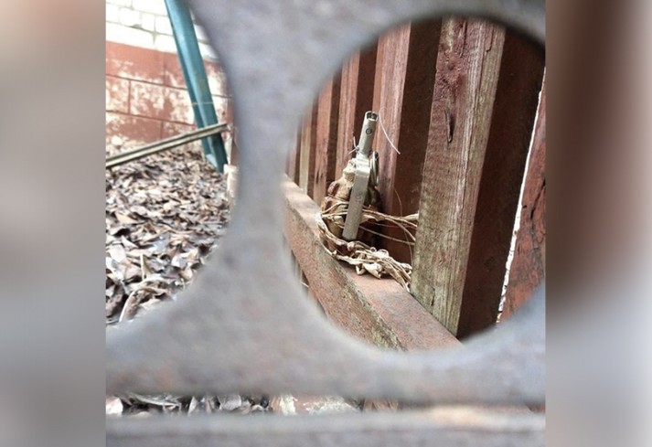Біля воріт силовики натрапили на розтяжку з гранатою Ф-1, яку спочатку вдалося виявити службовій собаці
