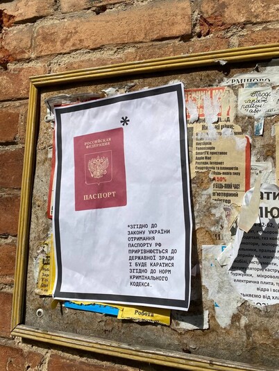 У публічних місцях цих міст з’явилися листівки із нагадуванням кримінальної відповідальності за отримання російського громадянства.