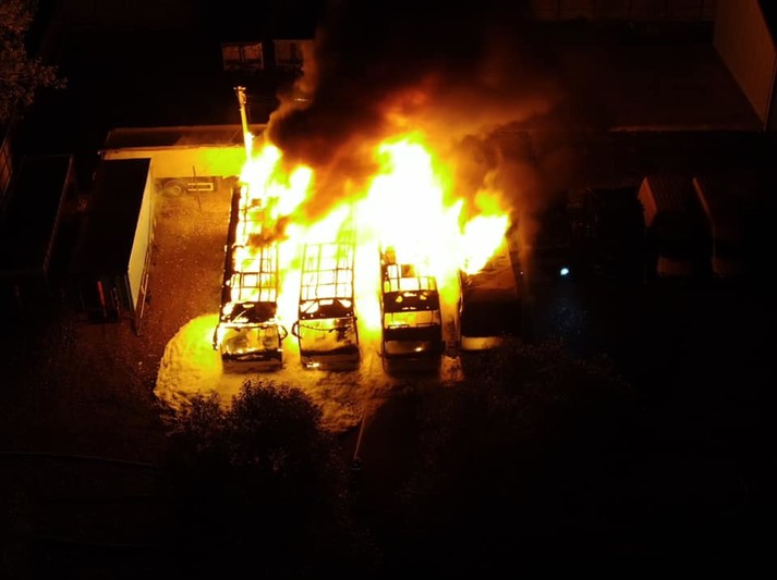 На Прикарпатті згоріли чотири пасажирських автобуси (фото, відео)