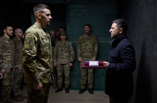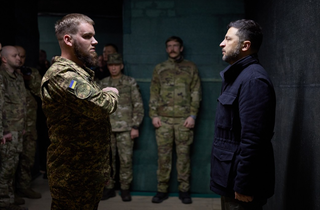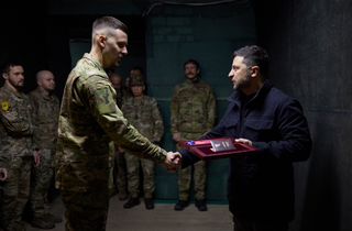 На пункті управління 4-ї бригади оперативного призначення Нацгвардії «Рубіж», яка разом із суміжними підрозділами веде оборону на добропільському напрямку, президент Володимир Зеленський зустрівся з військовими та відзначив їх державними нагородами. Про це повідомляє «Главком» з посиланням на Офіс президента.