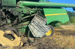 Інший випадок стався на полі під час збирання врожаю. На міну наїхав комбайн. Внаслідок вибуху сільськогосподарська техніка була зруйнована, а обидва комбайнери отримали поранення.