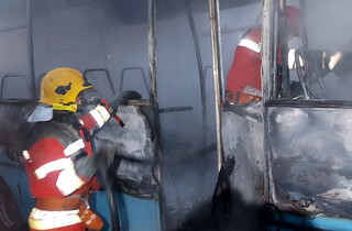 Рятувальникам знадобилося менш як 30 хв, щоб загасити автобус, але він встиг згоріти вщент.