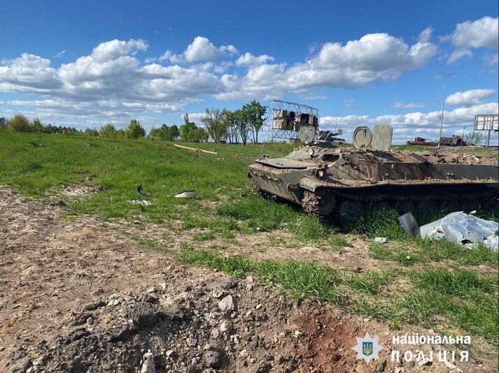 «Ще у перший день війни Збройними силами України тут було зупинено ворога. Розбито декілька одиниць техніки, вбито рашистських солдатів. Довгий час ця територія знаходилися під постійними обстрілами. Тепер вона звільнена. Слідчо-оперативна група нарешті може провести огляд місця події. Виявлено залишки тіл двох військових РФ та, на жаль, трьох наших громадян, які були розстріляні рашистами», – розповів він.