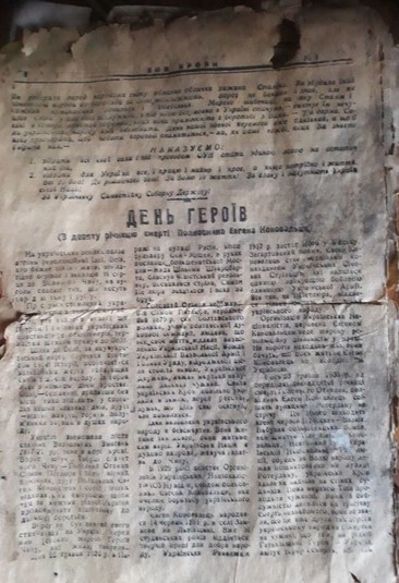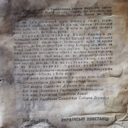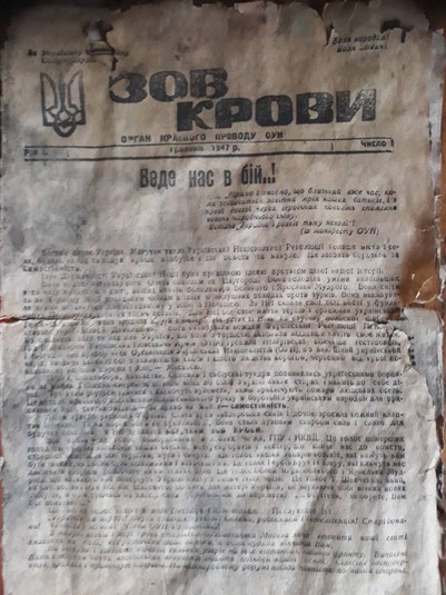 «У гільзі від італійського снаряда, що була закрита дерев’яною пробкою, понад сім десятиліть у землі пролежали три друковані артефакти: газета «Зов крови» за 1947 рік, листівка «Українська молодь!» і буклетик «За що бореться Українська Повстанча Армія (УПА)?», – зазначив історик.