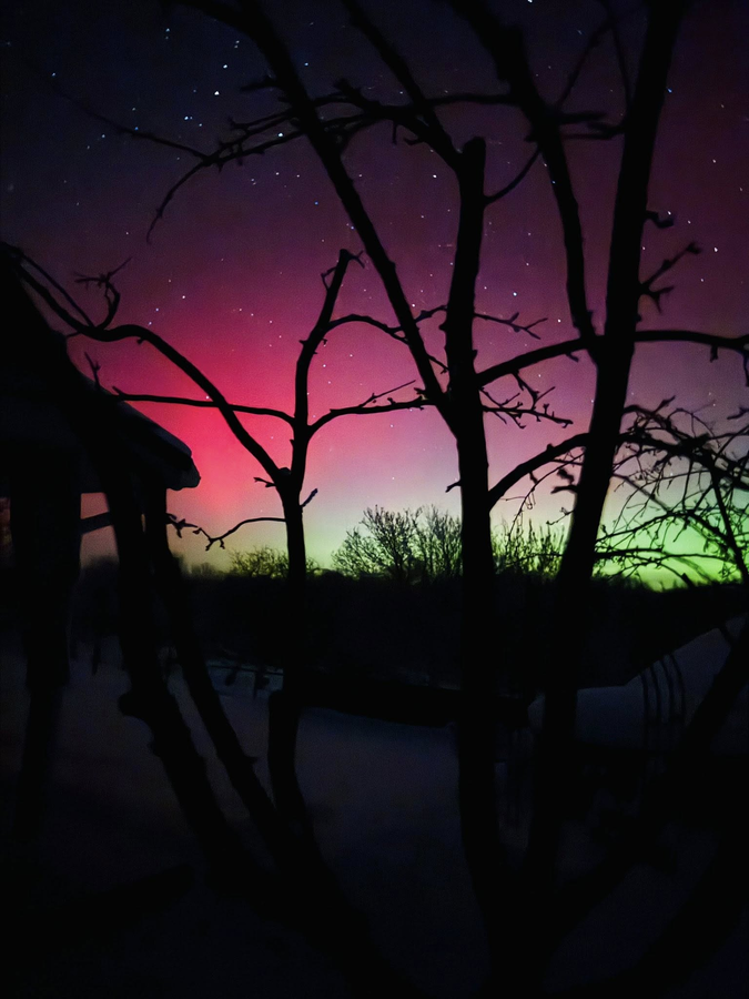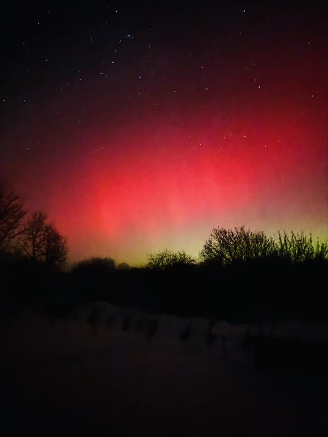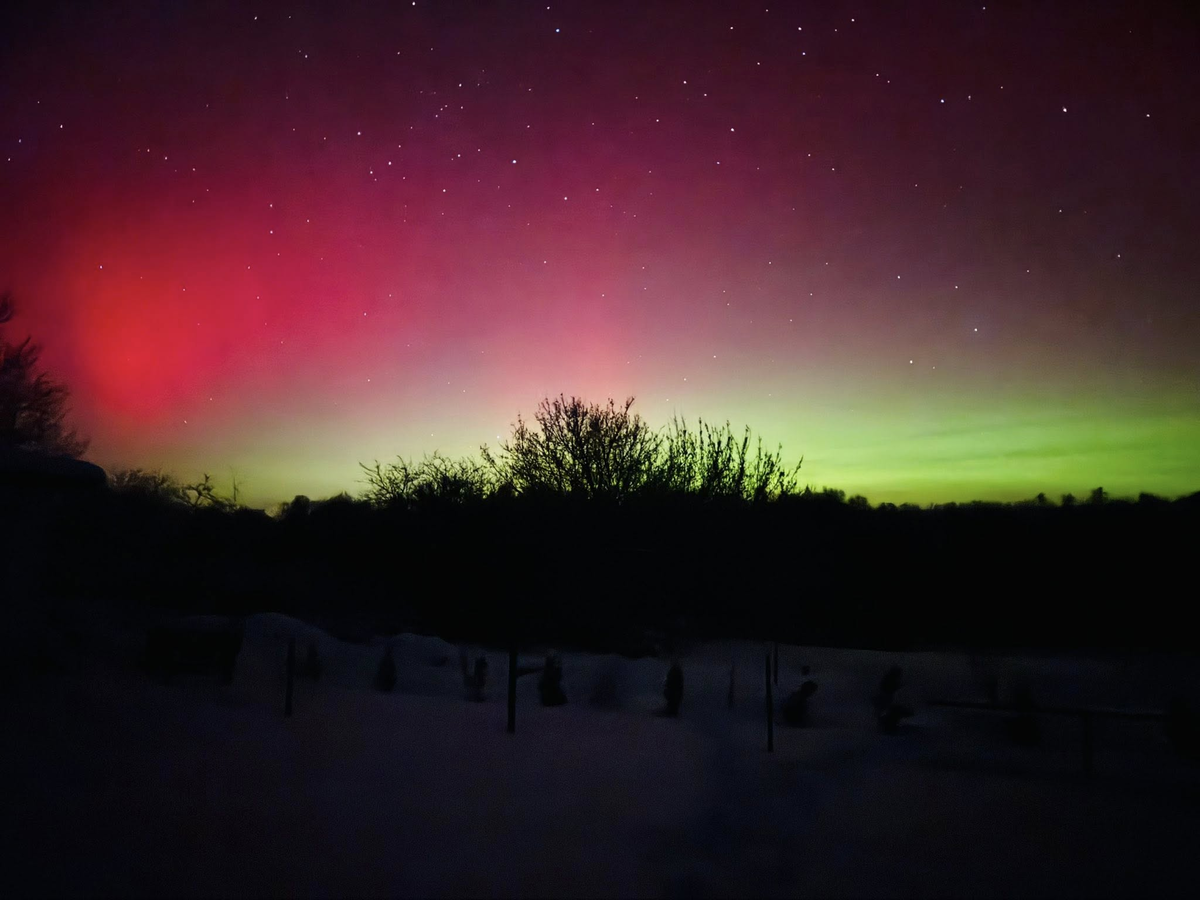 Полярне сяйво також спостерігали в Харківській області. Ефектні світлини з’явилися й з інших регіонів України, зокрема з Полтавської, Івано-Франківської, Рівненської, Житомирської, Тернопільської та Запорізької областей.