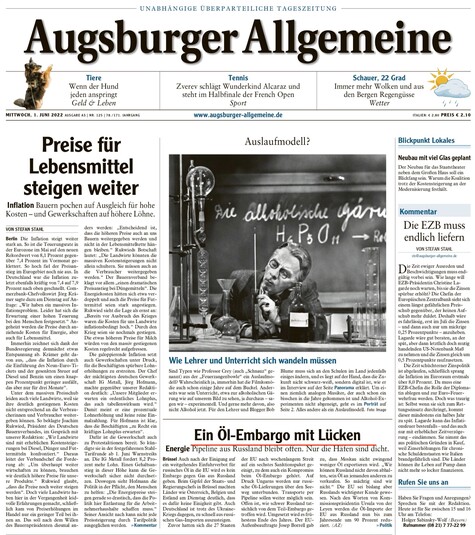 Augsburger Allgemeine: «Нафтове ембарго з лазівками. Трубопровід із Росії залишається відкритим. Тільки порти зачинені». Країни ЄС домовилися про компроміс щодо нафтового ембарго проти Росії. Повідомляється, що більше двох третин постачання російської нафти до ЄС порушено забороною на імпорт.