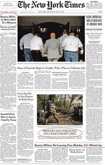 NYT: «Російська міліція в Малі причетна до розстрілу мирних жителів разом із екстремістами». В останню неділю березня перед Рамаданом тисячі торговців та сільських жителів заповнили ринок Мури в центрі Малі, торгуючи худобою у величезному загоні та запасаючись спеціями і овочами на піщаних вуличках міста.