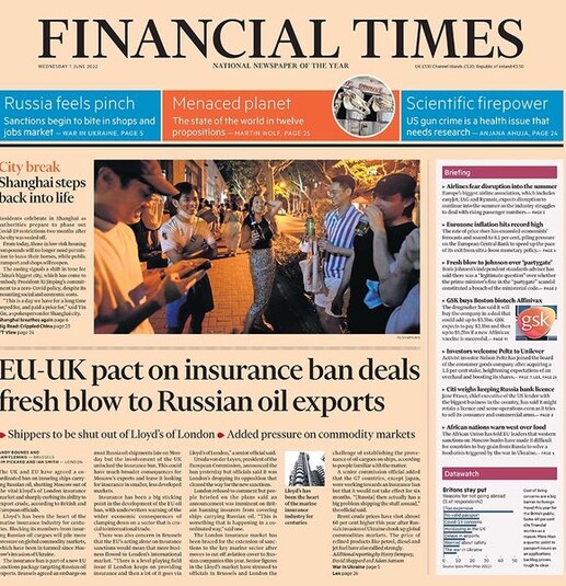 Financial Times. Велика Британія та ЄС домовилися про заборону страхування суден, що перевозять російську нафту, позбавивши Москву доступу до життєво важливого лондонського страхового ринку Lloyd's та різко обмеживши її можливості щодо експорту сирої нафти. Заборона страхування є частиною нового пакету санкцій ЄС, спрямованого проти експорту російської нафти, додає газета.
