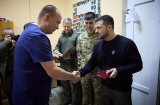 Глава держави наголосив, що лікарі повертають бійців у стрій, але, найголовніше, – повертають до життя, до рідних і близьких. «Усі ці дні, місяці ми разом з вами йдемо до перемоги. Ви теж наші герої. І я вам бажаю цієї перемоги», – сказав президент. Володимир Зеленський вручив медичним працівникам державні нагороди.
