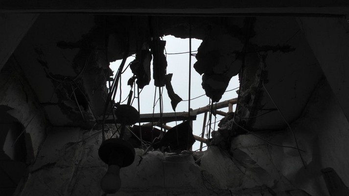 Зруйнований в результаті обстрілу будинок у Новолуганському