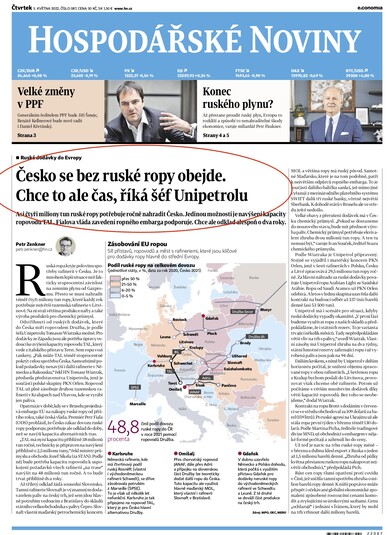 Чехія, Hospodarske Noviny: «Чехія обійдеться без російської нафти».