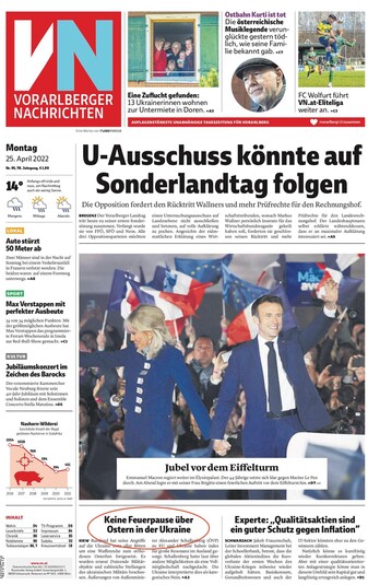 Австрія. Газета Vorarlberger Nachrichten: «Перемир'я на Великдень в Україні не було».