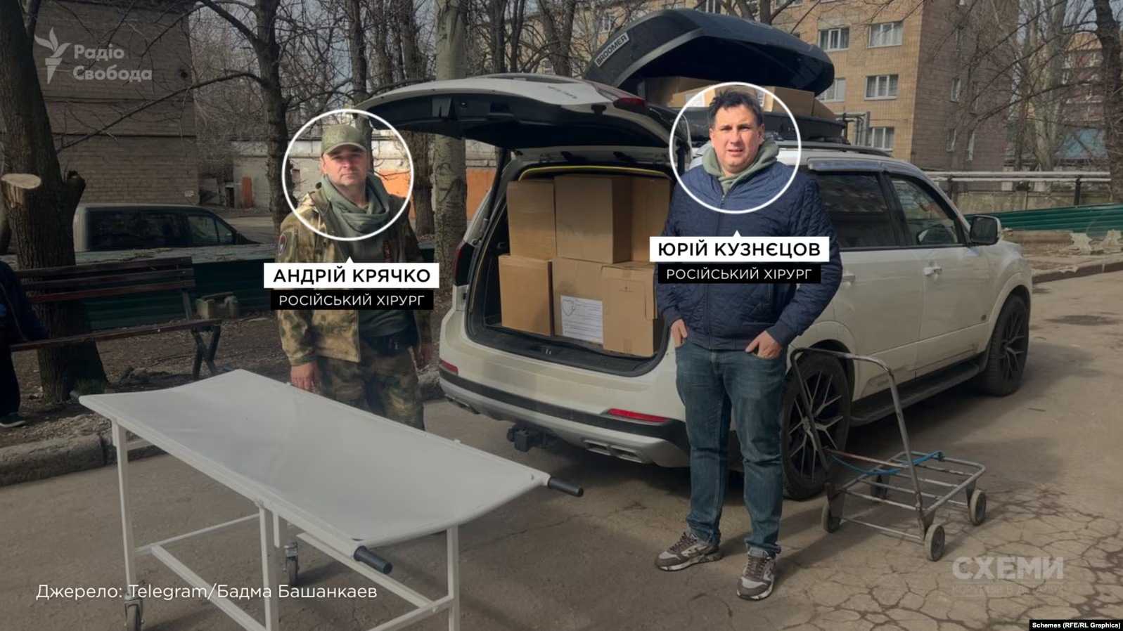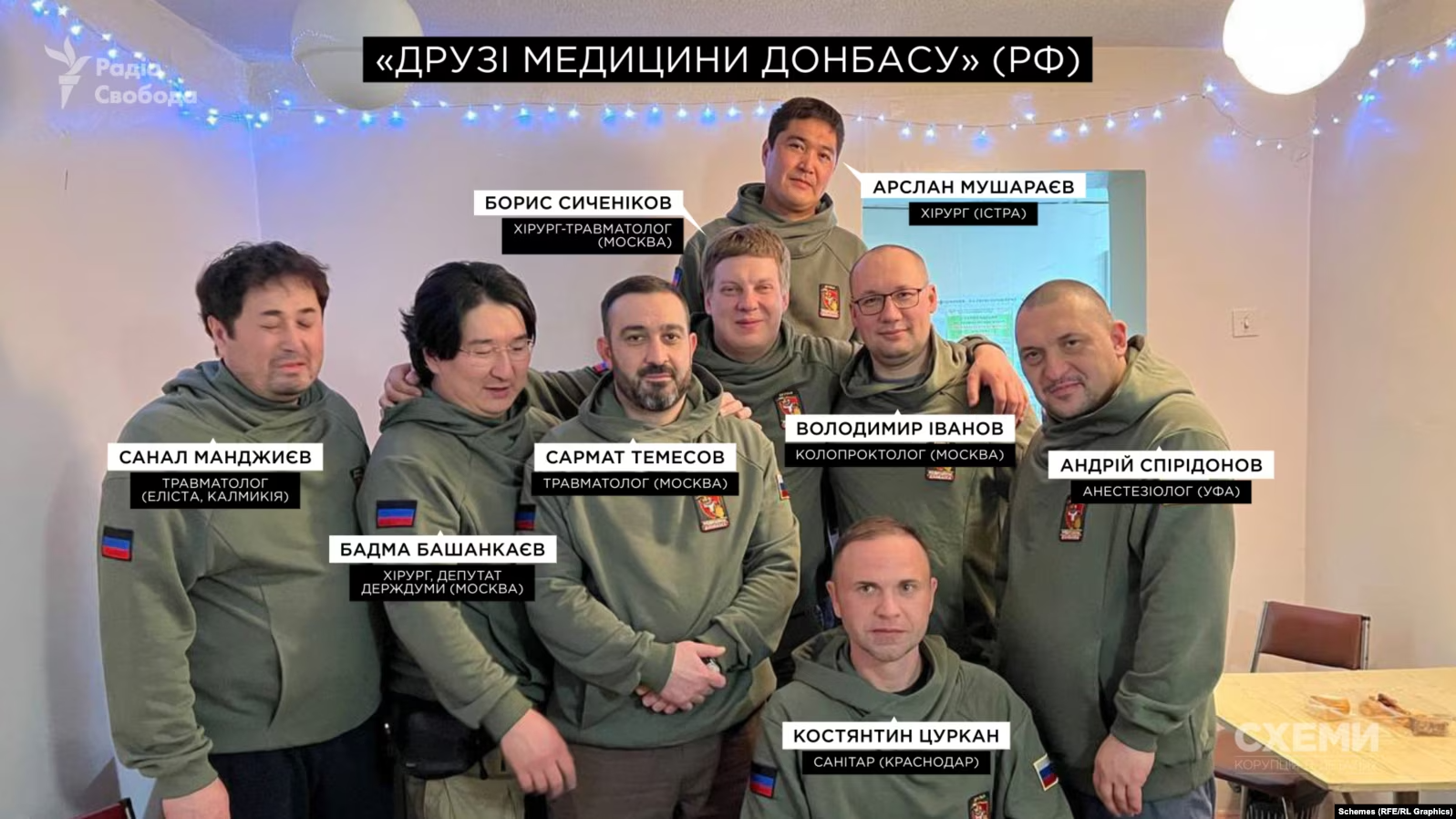 «Схеми» з’ясували, що з перших тижнів повномасштабного вторгнення в ДОКТМО регулярно працювала група російських лікарів «Друзі медицини Донбасу». Її ініціатор – московський хірург і депутат Держдуми РФ від «Єдиної Росії» Бадма Башанкаєв (перебуває під міжнародними санкціями).
