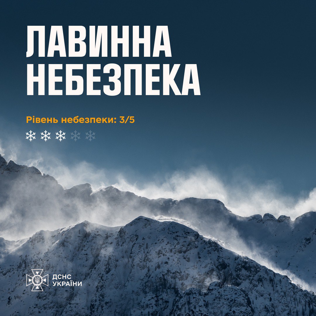 Рятувальники попередили про небезпеку снігових лавин в Івано-Франківській та Закарпатській областях протягом наступних днів. Про це повідомили у Державній службі України з надзвичайних ситуацій.